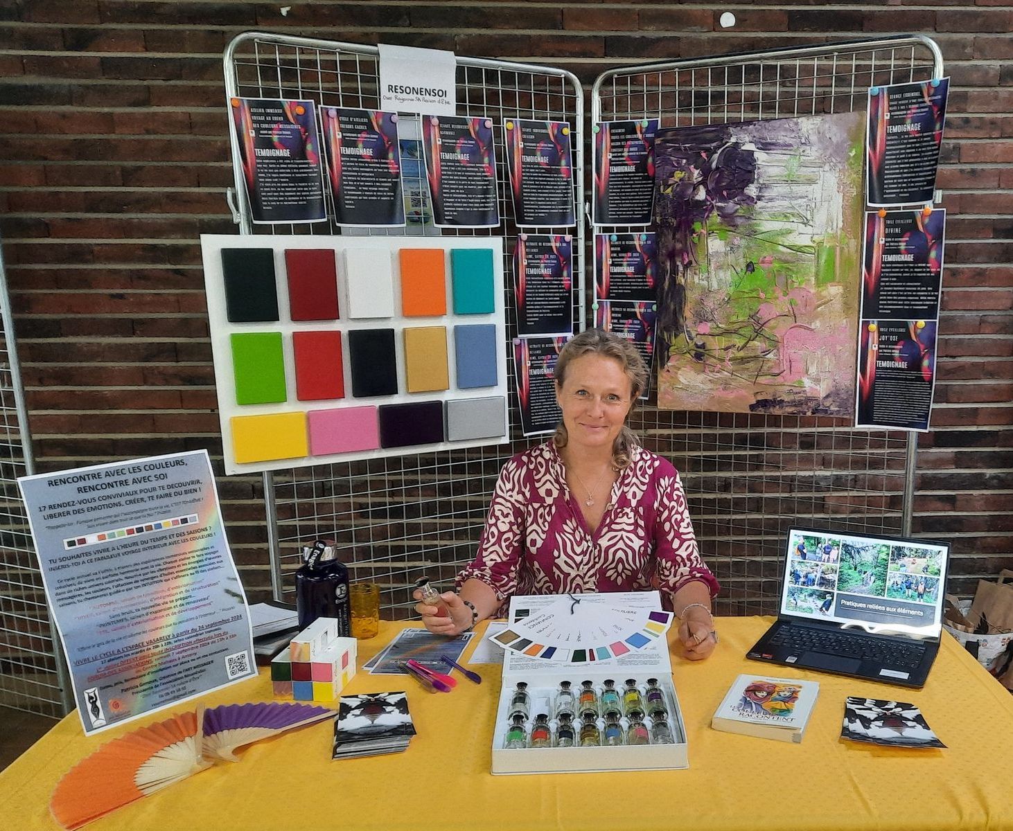 Présentation d'oeuvres messagères et éveilleuse et d'accompagnement avec mes oeuvres, 14 couleurs messagères, des expériences sensorielles.