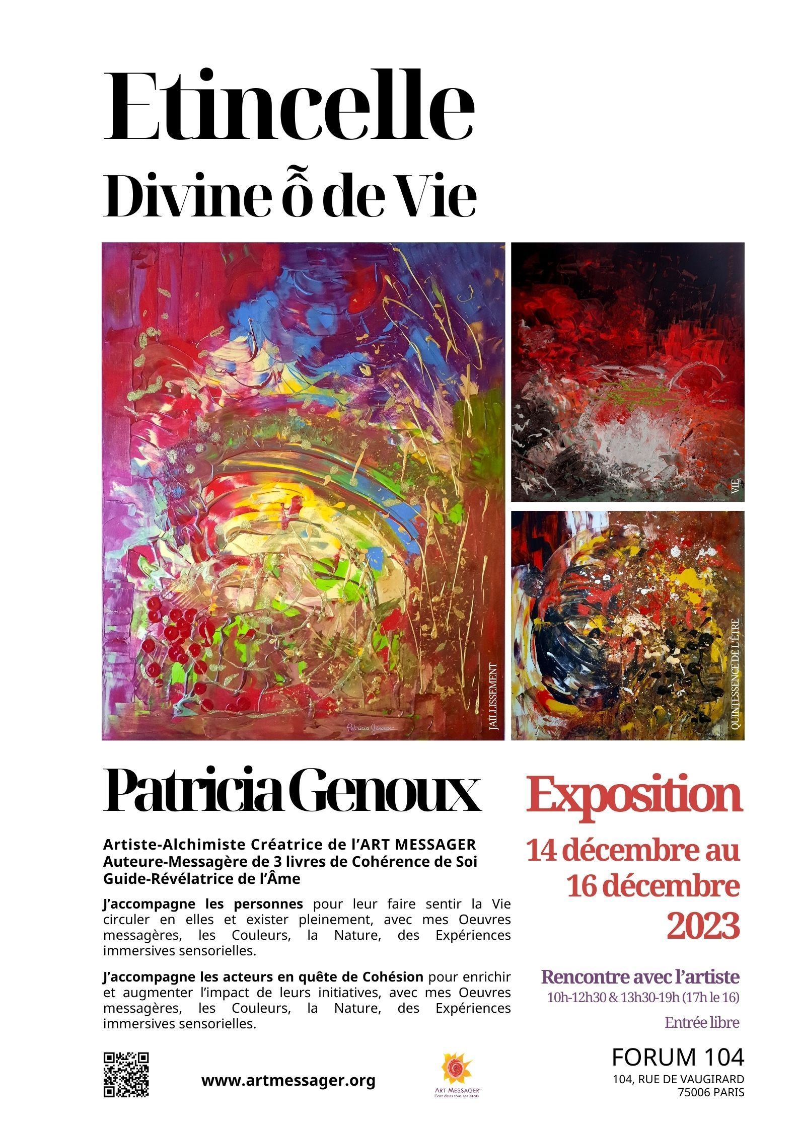 Présentation de 36 œuvres inédites (30 toiles et 6 photographies) d’ART MESSAGER dans le cadre de l’EXPOSITION LUMIERES D’ÂMES cocréée avec Catherine Marquette, créatrice du jeu de cartes des Familles d’âmes (éditions Trédaniel), qui a également présenté 36 œuvres.